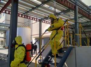 今年6月是第19個(gè)全國(guó)“安全生產(chǎn)月”,主題是“消除事故隱患,筑牢安全防線”,為響應(yīng)國(guó)家“安全生產(chǎn)月”活動(dòng)精神,貫徹落實(shí)國(guó)家安全生產(chǎn)方針,進(jìn)一步增強(qiáng)員工的安全防護(hù)意識(shí),有效地防止和最大限度地減少事故隱患。我公司共組織開(kāi)展了三次應(yīng)急演練,包括液體環(huán)氧樹(shù)脂裝置環(huán)氧氯丙烷泄漏、火災(zāi)、人員受傷綜合應(yīng)急演練;液體環(huán)氧樹(shù)脂裝置原料罐區(qū)、庫(kù)房化學(xué)品泄漏現(xiàn)場(chǎng)處置方案應(yīng)急演練;液體環(huán)氧樹(shù)脂裝置車(chē)間甲苯泄漏、火災(zāi)現(xiàn)場(chǎng)處置方案應(yīng)急演練。以檢驗(yàn)、提高處置化學(xué)品災(zāi)害事故的水平和能力,促使員工不斷提高自救和互救的能力,培養(yǎng)鍛煉員工在突發(fā)事故狀態(tài)下的應(yīng)急反應(yīng)、處置能力。三次演練過(guò)程中,各個(gè)參加演練的應(yīng)急小組在現(xiàn)場(chǎng)應(yīng)急指揮人員的統(tǒng)一指揮下迅速響應(yīng)、分工明確、流程清晰、內(nèi)容具體,整個(gè)過(guò)程都在緊張有序,有條不紊的進(jìn)行。